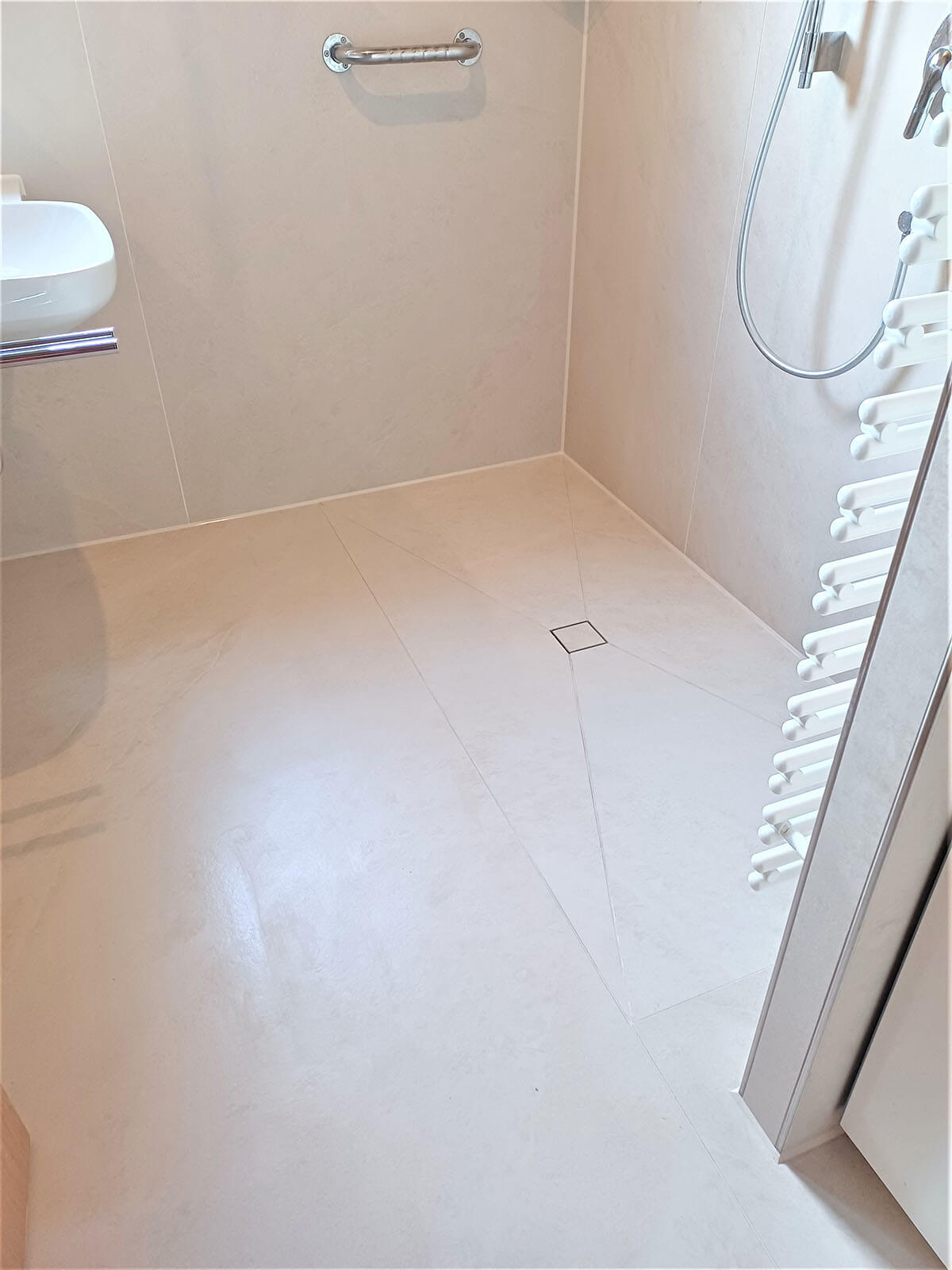 Für Unternehmen und öffentliche Einrichtungen (z. B. Klinik, Tankstelle, Lebensmittelproduktion) realisiere ich Nassbereich‑Lösungen mit Fokus auf Hygiene, langlebige Abdichtung und planbare Umsetzung – auf Wunsch auch in Etappen, damit Stillstandzeiten minimiert werden.